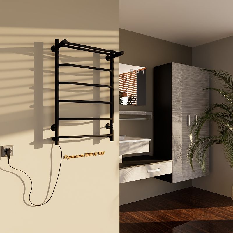 Электрический полотенцесушитель Altasan Горизонт П Горизонт8050ПЧМ с полкой Черный муар 80х50