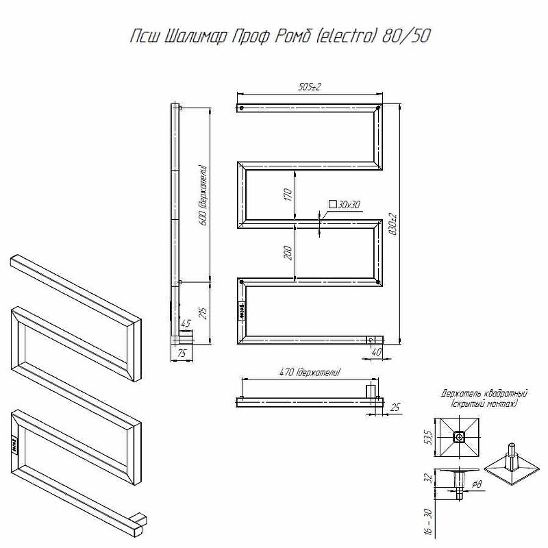 Электрический полотенцесушитель Altasan ШалимарПроф ШалимарПроф8050ЧМ Черный муар 80х50Данный полотенцесушитель имеет два вида подключения: подключение стандартным кабелем с вилкой 220 Вольт и скрытое подключение к заранее подведенной на месте установки проводке. Во втором случае необходимо обжать жилы проводки дополнительными клемниками (идут в комплекте) и подсоединить их к жилам полотенцесушителя, согласно цветовой разметки.