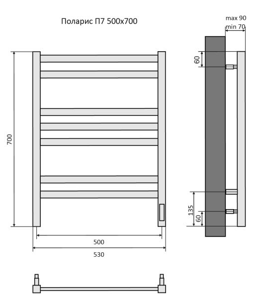 Полотенцесушитель электрический Aquatek (Акватек) Поларис П7 500х700 мм, подключение скрытое к сети электропитания / электропровод с вилкой, с терморегулятором и таймером quick touch, нержавеющая сталь AISI 201, гарантия 5 летХарактеристики:Стойка квадрат 30х30,ребра овал 29, ВСТРОЕННЫЙ ДИММЕРКомплектация:полотенцесушитель;
