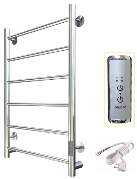ПЭК — Полотенцесушитель электрический кабельный. Изделие производится из углеродистой стали. Вертикальные трубы d -32 мм., для горизонтальных вставок используется труба d — 18 мм.Нагревательным элементом в полотенцесушителе является греющий кабель — аналог «теплого пола», кабель заправляется внутрь каждой трубы и передает тепло на поверхность изделия. Во включенном состоянии постоянно поддерживается температура 50-600. Экономичность: Полотенцесушитель снабжен панелью управления. Кнопка включения/выключения и таймер на 2 / 4 / 6 часов , который позволяет включать изделие на ограниченное время. Эта функция дает возможность экономить электричество.Мощность электрического прибора порядка 60W при стоимости 1 кВт — 5 руб несложно посчитать: 60W х 24 = 1,5 кВт в сутки. Стоимость эксплуатации изделия за сутки 1,5 кВт х 5 руб. = 7,5 руб. Максимальный расход электричества за месяц примерно 225 руб. При условии если сушка работает круглосуточно.Удобство монтажа: Полотенцесушитель крепится к стене на четыре держателя. Универсальное исполнение изделия позволяет подключить его, как справа, так и слева.Скрытое подключение: Благодаря приваренным в нижней части вертикальных труб двум распаячным коробкам, в которых соединяется электропроводка, возможно скрытое подключение к электричеству слева и справа.Подключение в розетку: В комплекте также имеется шнур с вилкой, который будет необходим при подключении к розетке.Панель включения:РЕЖИМ №1 — работа в течение 2 часов с последующим отключением.РЕЖИМ №2 — работа в течение 4 часов с последующим отключением.РЕЖИМ №3 — работа в течение 6 часов с последующим отключением.Терморегулятор: 40 / 50 / 60 градусов