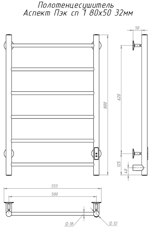 Электрический полотенцесушитель Тругор Аспект Пэк сп 1 80x50см хром АспектПэксп1/805032