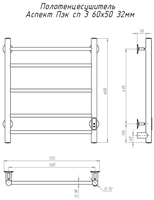 Электрический полотенцесушитель Тругор Аспект Пэк сп 3 60x50см хром АспектПэксп3/605032