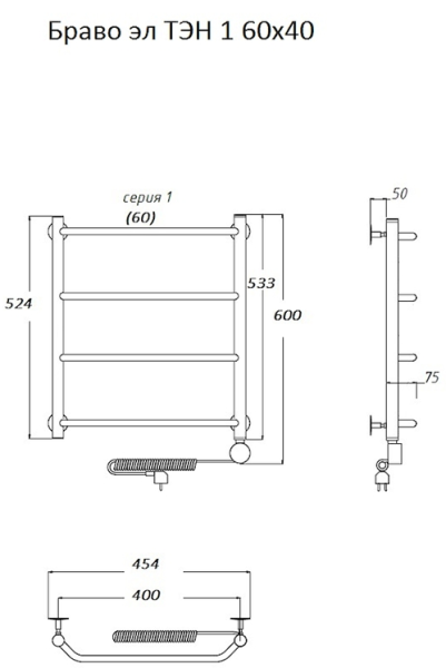 Электрический полотенцесушитель Тругор Браво 1 60x40см хром Браво1/элТЭН6040