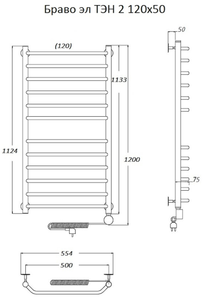 Электрический полотенцесушитель Тругор Браво 2 120x50см хром Браво2/элТЭН12050