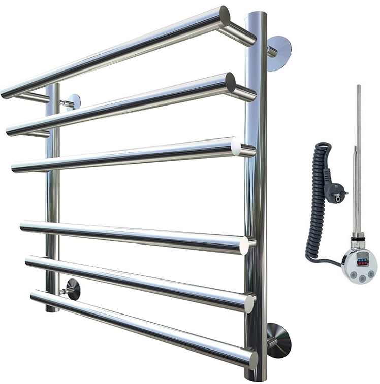 Внимание! Для скрытого монтажа электропроводки необходимо приобрести комплект скрытого подключения.Полотенцесушитель электрический комплектуется ТЭНом с терморегулятором и таймером.Изделие производится из нержавеющей стали AISI 201. Вертикальные трубы d -32 мм., для горизонтальных вставок используется труба d — 18 мм.Нагревательным элементом в полотенцесушителе является ТЭН. Полотенцесушитель заполнен бытовым антифризомЭкономичность: ТЭН нагревает антифриз до нужной температуры и выключается, далее при остывании полотенцесушителя он включается опять. Таким образом он работает не постоянно и получается, что ТЭН потребляет электричество не 300 Вт, а порядка 100 — 150 ВтМощность электрического прибора порядка 100 Вт при стоимости 1 Вт — 5 руб несложно посчитать: 100Вт х 24 = 2,4 кВт в сутки. Стоимость эксплуатации изделия за сутки 2,4 кВт х 5 руб. = 12 руб. При максимальной температуре расход электричества за 30 дней составит порядка 360 руб. При условии если сушка работает круглосуточно на максимальной температуре.Удобство монтажа: Полотенцесушитель крепится к стене на четыре держателя. Изначально ТЭН не установлен в полотенцесушитель для безопасной транспортировки, его можно установить, как справа, так и слева предварительно перевернув полотенцесушитель вверх ногами и выкрутив заглушку с нужной стороны на место в которое установится ТЭН.Примечание. Внимательно изучите инструкцию по установке ТЭНа!Скрытое подключение: Для скрытого монтажа электропроводки необходимо приобрести комплект скрытого подключения.Подключение в розетку: В комплекте с ТЭНом имеется шнур с вилкой, который будет необходим при подключении к розетке.