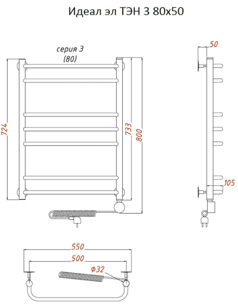 Электрический полотенцесушитель Тругор Идеал 3 80x50см хром Идеал3/элТЭН8050