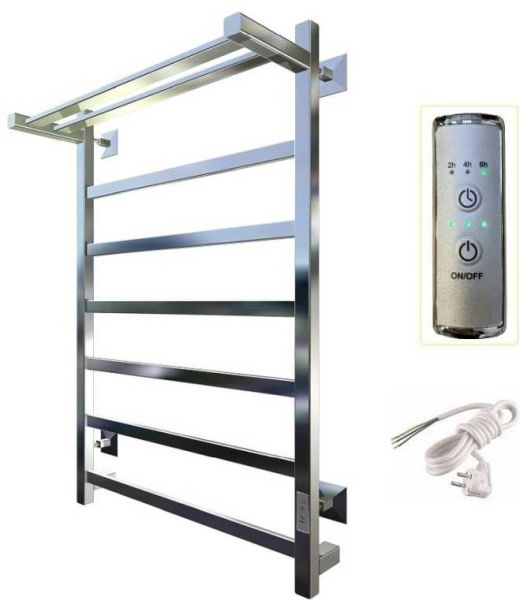 Внимание! Для скрытого монтажа электропроводки необходимо приобрести комплект скрытого подключения. Полотенцесушитель электрический комплектуется ТЭНом с терморегулятором и таймером. Изделие производится из нержавеющей стали AISI 201. Вертикальные трубы d -32 мм., для горизонтальных вставок используется труба d — 18 мм. Нагревательным элементом в полотенцесушителе является ТЭН. Полотенцесушитель заполнен бытовым антифризом.Экономичность: ТЭН нагревает антифриз до нужной температуры и выключается, далее при остывании полотенцесушителя он включается опять. Таким образом он работает не постоянно, и получается, что ТЭН потребляет электричество не 300 Вт, а порядка 100 — 150 Вт.Мощность электрического прибора порядка 100 Вт при стоимости 1 Вт — 5 руб несложно посчитать: 100Вт х 24 = 2,4 кВт в сутки. Стоимость эксплуатации изделия за сутки 2,4 кВт х 5 руб. = 12 руб. При максимальной температуре расход электричества за 30 дней составит порядка 360 руб. При условии если сушка работает круглосуточно на максимальной температуре.Удобство монтажа: Полотенцесушитель крепится к стене на четыре держателя. Изначально ТЭН не установлен в полотенцесушитель для безопасной транспортировки, его можно установить, как справа, так и слева предварительно перевернув полотенцесушитель вверх ногами и выкрутив заглушку с нужной стороны на место в которое установится ТЭН.Примечание. Внимательно изучите инструкцию по установке ТЭНа!Скрытое подключение: Для скрытого монтажа электропроводки необходимо приобрести комплект скрытого подключения.Подключение в розетку: В комплекте с ТЭНом имеется шнур с вилкой, который будет необходим при подключении к розетке.