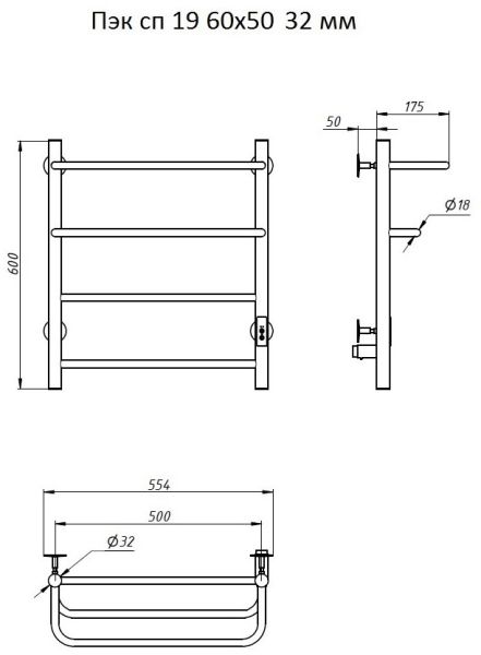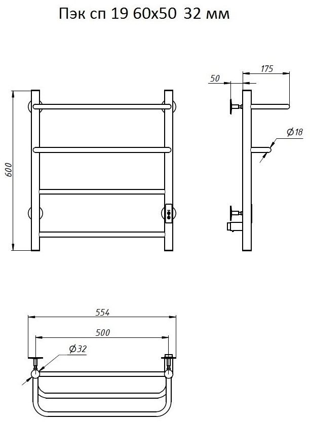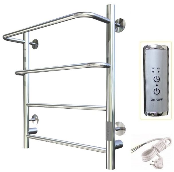 ПЭК — Полотенцесушитель электрический кабельный. Изделие производится из нержавеющей стали AISI 201. Вертикальные трубы d -32 мм., для горизонтальных вставок используется труба d — 18 мм.Нагревательным элементом в полотенцесушителе является греющий кабель — аналог «теплого пола», кабель заправляется внутрь каждой трубы и передает тепло на поверхность изделия. Во включенном состоянии постоянно поддерживается температура 50-600.Экономичность: Полотенцесушитель снабжен панелью управления. Кнопка включения/выключения и таймер на 2 часа и 4 часа, который позволяет включать изделие на ограниченное время. Эта функция дает возможность экономить электричество.Мощность электрического прибора порядка 60W при стоимости 1 кВт — 5 руб несложно посчитать: 60W х 24 = 1,5 кВт в сутки. Стоимость эксплуатации изделия за сутки 1,5 кВт х 5 руб. = 7,5 руб. Максимальный расход электричества за месяц примерно 225 руб. При условии если сушка работает круглосуточно.Удобство монтажа: Полотенцесушитель крепится к стене на четыре держателя. Универсальное исполнение изделия позволяет подключить его, как справа, так и слева.Скрытое подключение: Благодаря приваренным в нижней части вертикальных труб двум распаячным коробкам, в которых соединяется электропроводка, возможно скрытое подключение к электричеству слева и справа.Подключение в розетку: В комплекте также имеется шнур с вилкой, который будет необходим при подключении к розетке.Панель включения:РЕЖИМ №1 — постоянный нагревРЕЖИМ №2 — работа в течение 2 часов с последующим отключением.РЕЖИМ №3 — работа в течение 4 часов с последующим отключением.