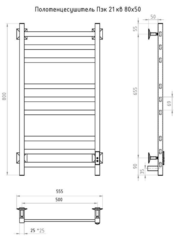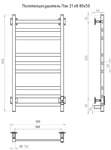 Электрический полотенцесушитель Тругор Пэк сп 21кв 80x50см чёрный Пэксп21кв/8050черныйВГП