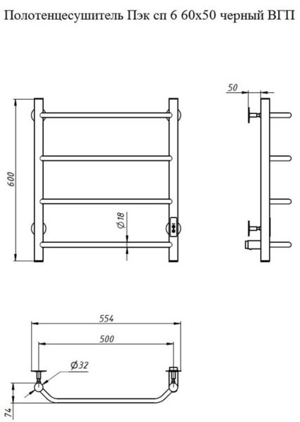 Электрический полотенцесушитель Тругор Пэк сп 6 60x50см чёрный Пэксп6/6050черныйВГП