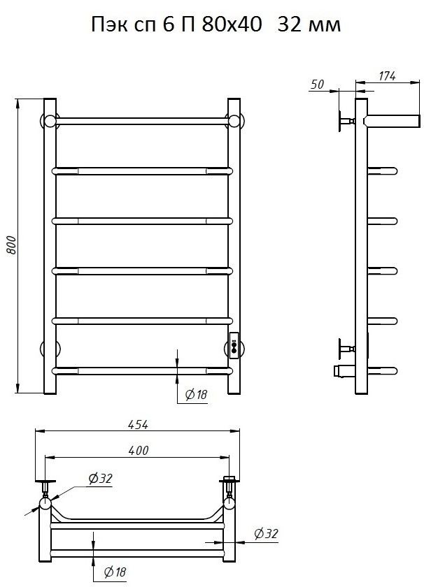 ПЭК — Полотенцесушитель электрический кабельный. Изделие производится из нержавеющей стали AISI 201. Вертикальные трубы d -32 мм., для горизонтальных вставок используется труба d — 18 мм.Нагревательным элементом в полотенцесушителе является греющий кабель — аналог «теплого пола», кабель заправляется внутрь каждой трубы и передает тепло на поверхность изделия. Во включенном состоянии постоянно поддерживается температура 50-600.Экономичность: Полотенцесушитель снабжен панелью управления. Кнопка включения/выключения и таймер на 2 часа и 4 часа, который позволяет включать изделие на ограниченное время. Эта функция дает возможность экономить электричество.Мощность электрического прибора порядка 60W при стоимости 1 кВт — 5 руб несложно посчитать: 60W х 24 = 1,5 кВт в сутки. Стоимость эксплуатации изделия за сутки 1,5 кВт х 5 руб. = 7,5 руб. Максимальный расход электричества за месяц примерно 225 руб. При условии если сушка работает круглосуточно.Удобство монтажа: Полотенцесушитель крепится к стене на четыре держателя. Универсальное исполнение изделия позволяет подключить его, как справа, так и слева.Скрытое подключение: Благодаря приваренным в нижней части вертикальных труб двум распаячным коробкам, в которых соединяется электропроводка, возможно скрытое подключение к электричеству слева и справа.Подключение в розетку: В комплекте также имеется шнур с вилкой, который будет необходим при подключении к розетке.Панель включения:РЕЖИМ №1 — постоянный нагревРЕЖИМ №2 — работа в течение 2 часов с последующим отключением.РЕЖИМ №3 — работа в течение 4 часов с последующим отключением.