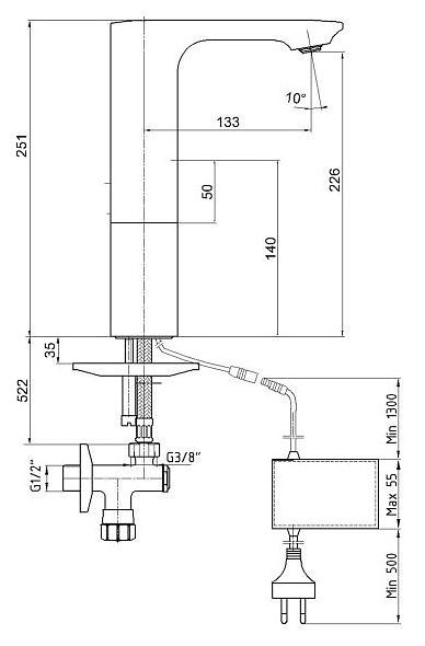 Электронный смеситель для раковины E.C.A предназначен для подачи горячей и холодной воды в ванных помещениях. Модель оснащена сенсором, распознающим движение в зоне чувствительности для бесконтактной подачи воды.Дополнительные характеристики: