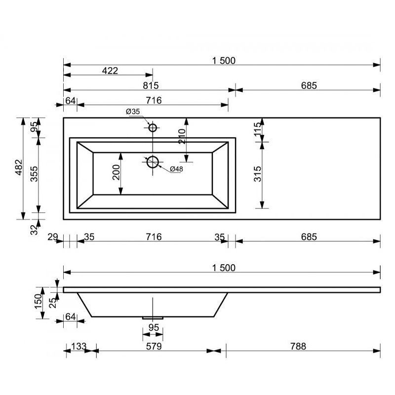 Эстет Dallas раковина для установки над спиральной машинкой 150 см левая
