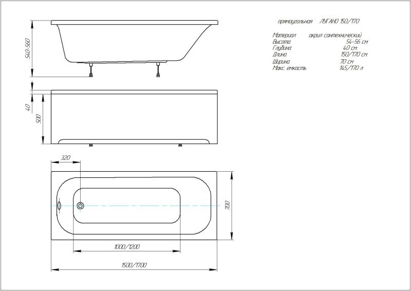 Фронтальный экран Aquatek Лугано/Либерти 170см EKR-F0000088 для акриловых ванн Лугано 170x70см и Либерти 170x70см
