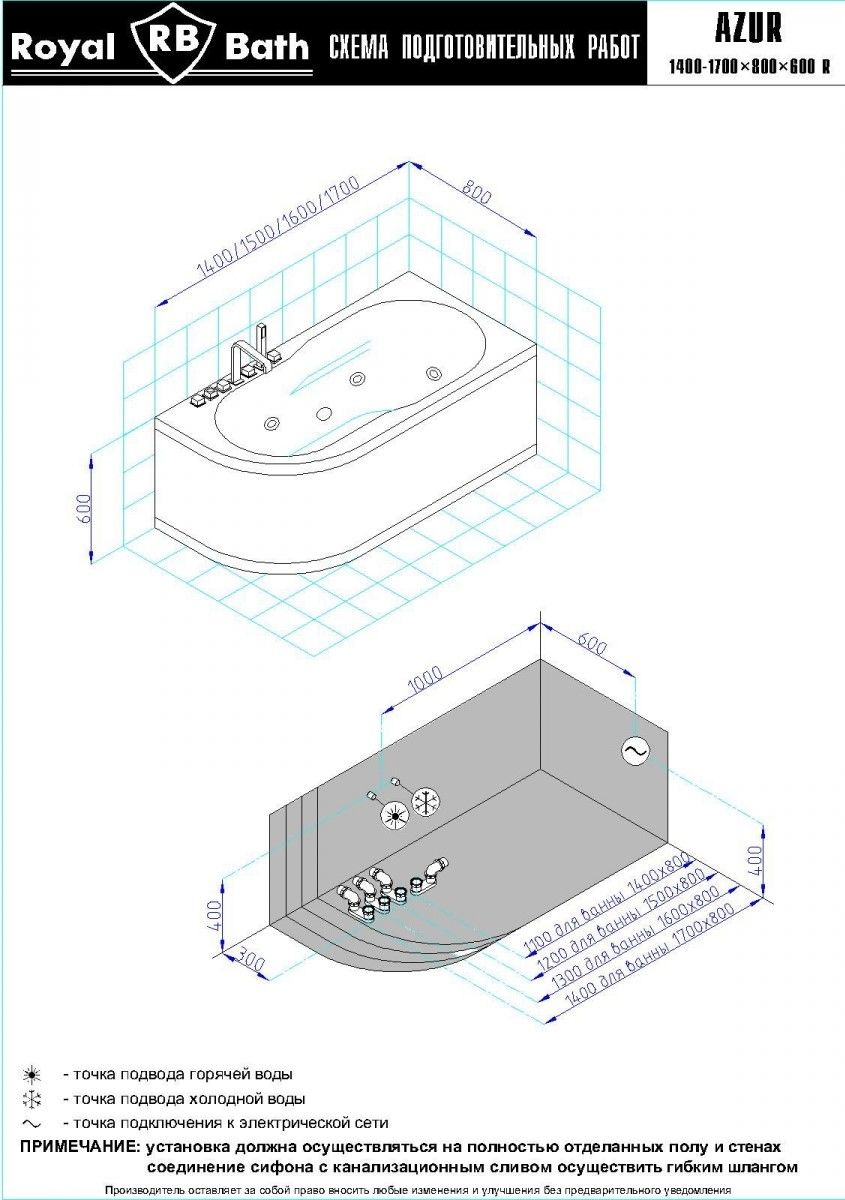 Акриловая ванна Royal Bath - идеальный выбор для создания атмосферы релакса и умиротворения, как в просторной в ванной комнате, так и в комнатном санузле. Основным преимуществом ванны из акрила считается её малый вес, высокая гигиеничность данного материала и низкая теплопроводность, долго сохраняющая комфортную температуру воды.Форма ванны Royal Bath замечательно подойдет к любому интерьерному решению, в различных вариантах размещения внутри ванной комнаты. Пристенная установка - это наиболее традиционный вид установки, а при использовании декоративного экрана пространство под ванной можно использовать как место хранения моющих средств. Оптимальная глубина позволяет принимать ванну с максимальным комфортом и полным расслаблением. Ванна Royal Bath выполнена со строгим соблюдением всех значительных элементов современного стиля.Благодаря тому, что родина бренда Royal Bath - Россия, можно смело быть уверенным в непревзойденном качестве и долговечности ванны, так как производство полностью соответствует стандартам качества. Акриловая ванна Royal Bath - это незаменимый, основной элемент любой ванной комнаты, без которого невозможно обойтись, ни в многоквартирном доме, ни в загородном коттедже.Комплектация гидромассажной ванны:- акриловая ванна Azur 160x80x60;- каркас сварной к ванне Azur 160;- панель к ванне Azur 160;- гидромассажная система на 5 форсунок;- спинной массаж на 6 форсунок;- аэромассаж с хромотерапией 8 форсунок;- слив-перелив для ванны полуавтомат 60 см.Ожидаемый срок поставки 7 дней.Обратите внимание: данная позиция поставляется под заказ! Товар поставляется по 100%-ной предоплате.Данный товар является заказным и имеет индивидуально-определенные свойства.