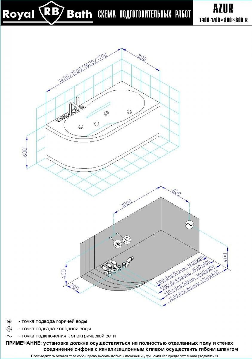 Гидромассажная ванна Royal Bath Azur Standart 140x80см правая белый RB614200ST-R