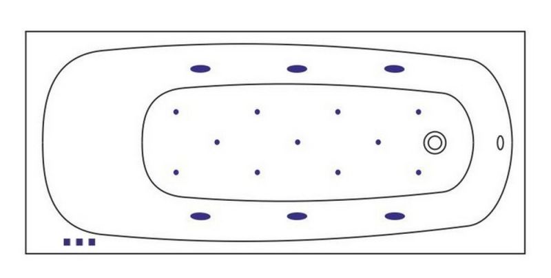 - Аэромассажная система (11 форсунок AERO-JET) с функцией регулировки интенсивности массажа;