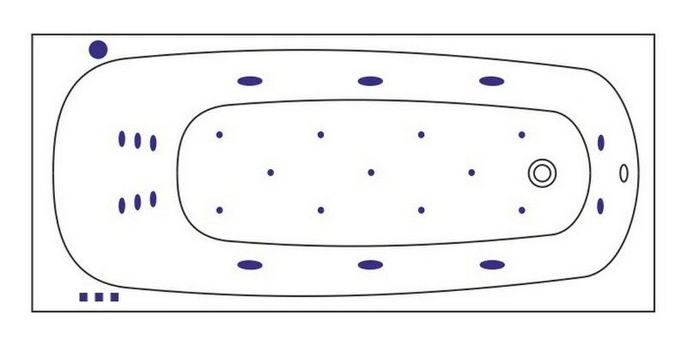 - Аэромассажная система (11 форсунок AERO-JET) с функцией регулировки интенсивности массажа;