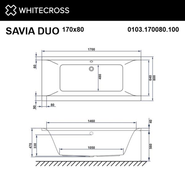 Гидромассажная ванна WHITECROSS Savia Duo 0103.170080.100.NANO.GL170x80 Nano золото