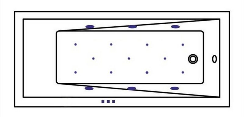 - Аэромассажная система (11 форсунок AERO-JET) с функцией регулировки интенсивности массажа;