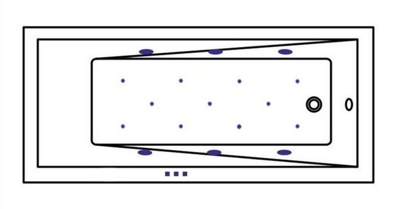 - Аэромассажная система (11 форсунок AERO-JET) с функцией регулировки интенсивности массажа;