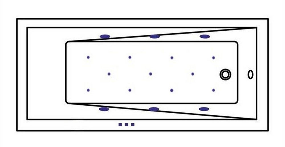- Аэромассажная система (11 форсунок AERO-JET) с функцией регулировки интенсивности массажа;