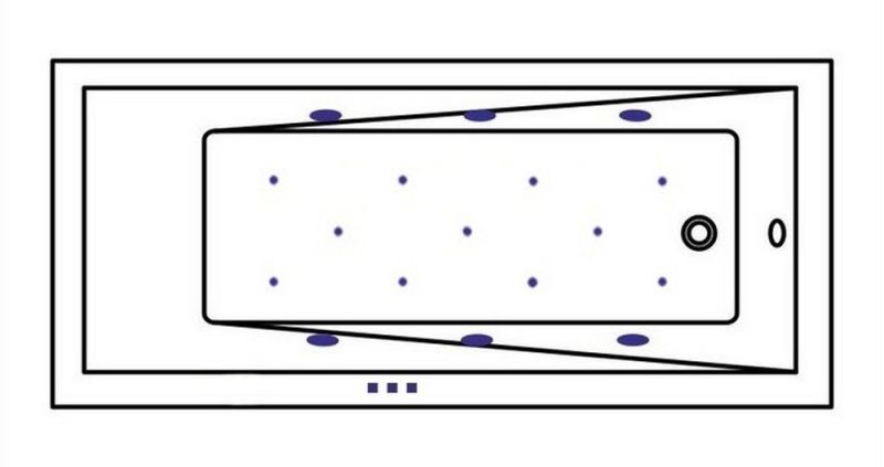 - Аэромассажная система (11 форсунок AERO-JET) с функцией регулировки интенсивности массажа;