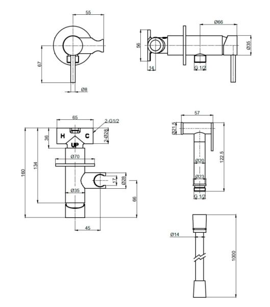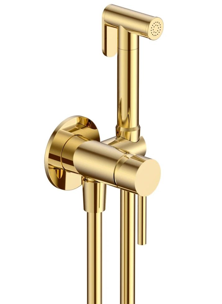 Готовый комплект гигиенического душа;скрытый монтаж;латунная лейка;глянцевое золото.