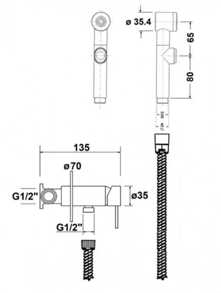 Готовый комплект гигиенического душа;скрытый монтаж;пластиковая лейка;хром.
