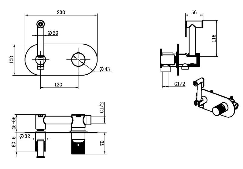 Гигиенический душ со смесителем Boheme Stick 127-BCR.Характеристики:Цвет: черный матовый, хром.