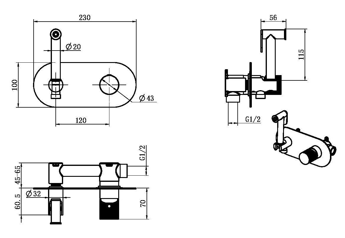 Гигиенический душ со смесителем Boheme Stick 127-BG.2.Характеристики:Цвет: черный матовый, золото.