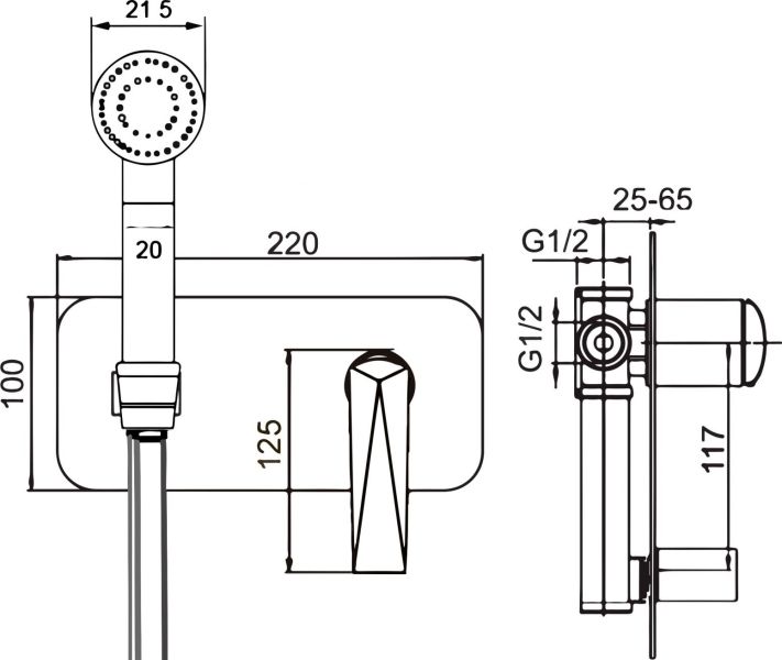 Диаметр гигиенического душа: 21,5 мм.