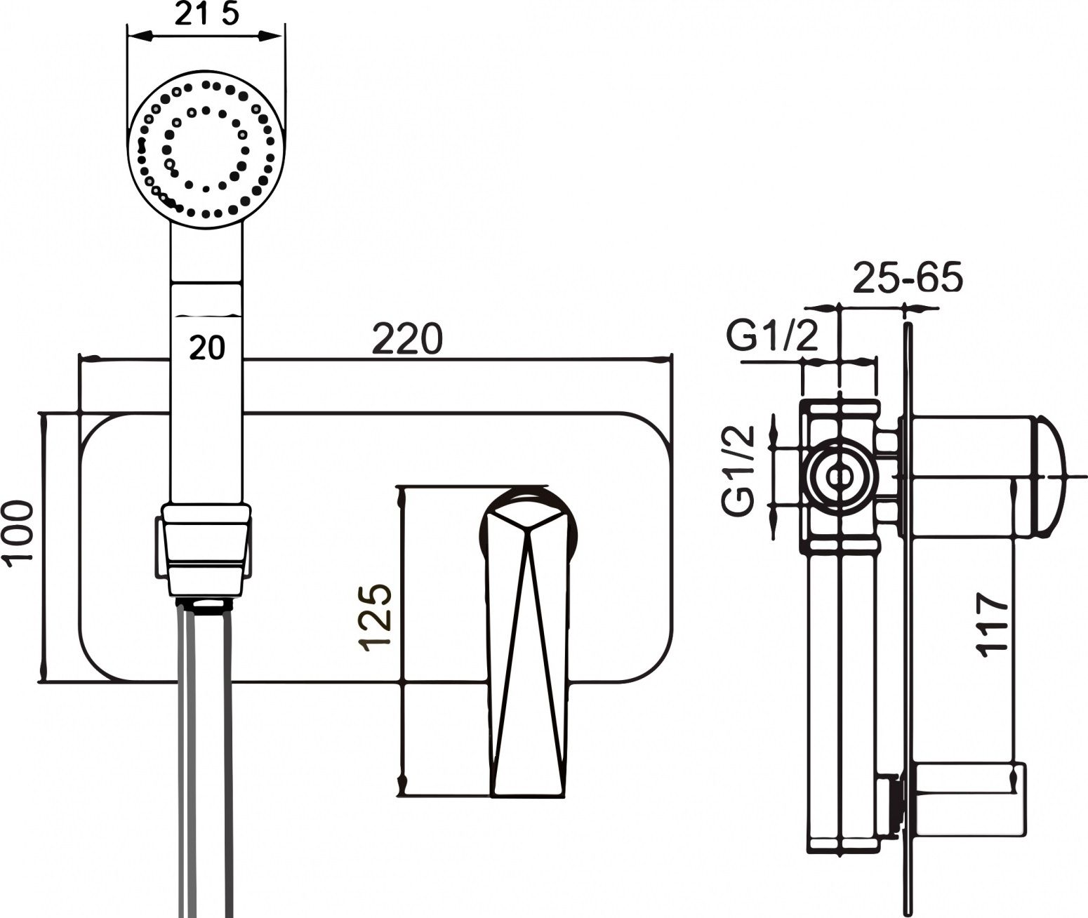 Гигиенический душ Boheme Venturo со смесителем чёрный/хром 377-B