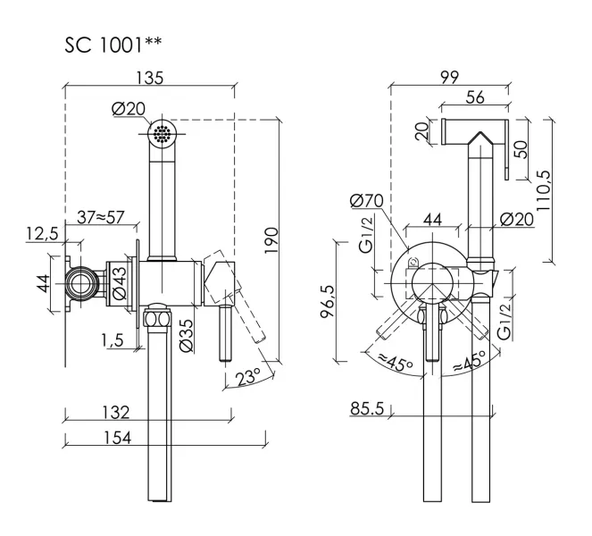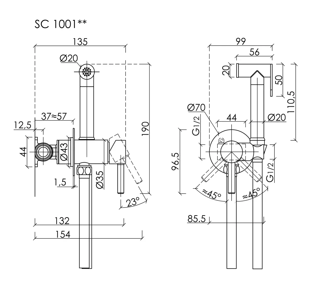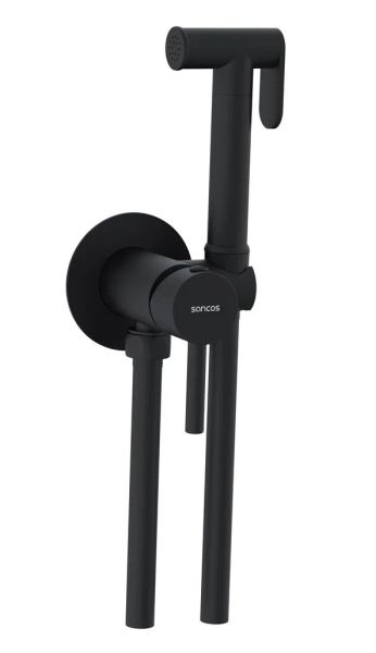 Гигиенический душ SANCOS Start со смесителем, с внутренней частью, цвет черный матовый, встраиваемый, настенныйПолный комплект со смесителем