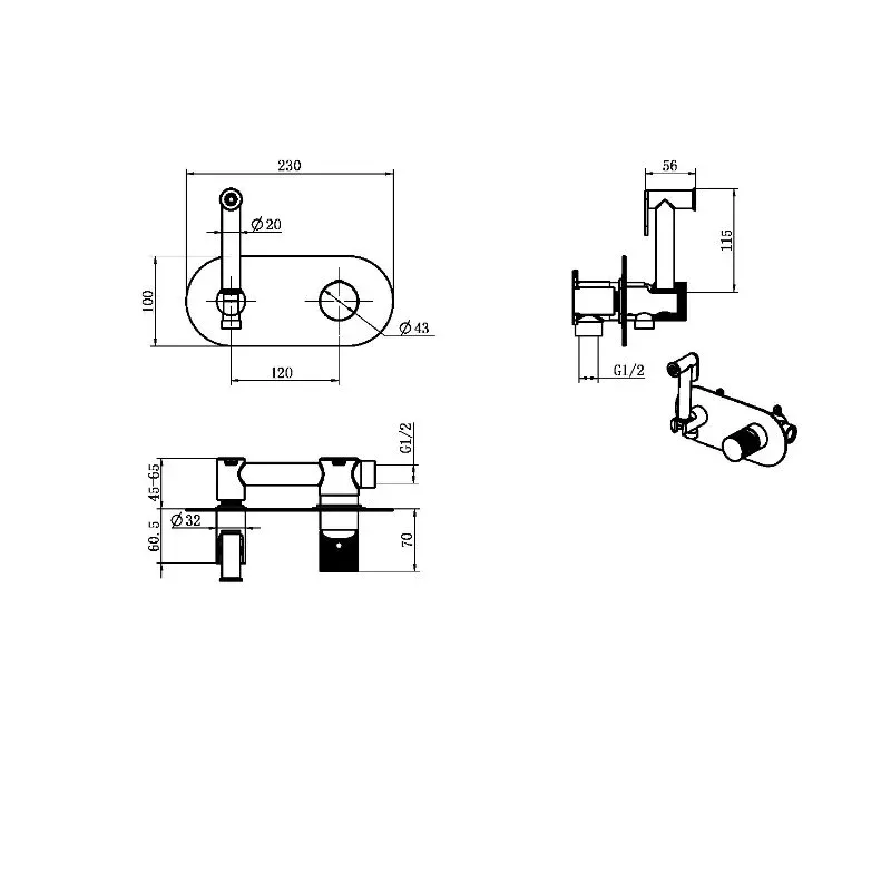Гигиенический душ со смесителем Boheme Stick Linea 127-BB.3 чёрный купить