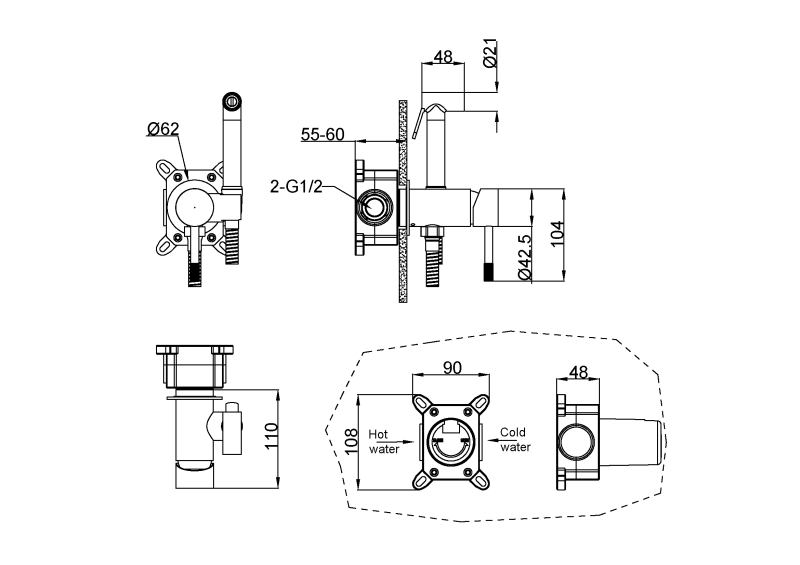 Гигиенический душ Boheme Uno, со смесителем, Смеситель Гигиенический душ Монтаж: встраиваемы... Подробнее