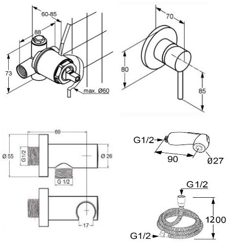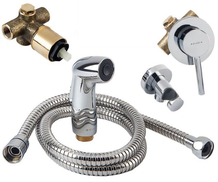 • гигиенический набор - комплект: встраиваемый смеситель для душа внутренняя часть и внешний элемент гигиенический душ с кнопкой включения воды