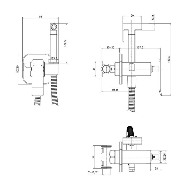 • Аксессуары в комплекте: лейка для биде с нажимным механизмом, шланг 1,2 м