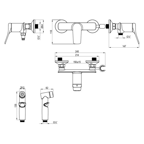 • Аксессуары в комплекте: лейка гигиенического душа с регулятором напора воды, душевой шланг 1,2 м