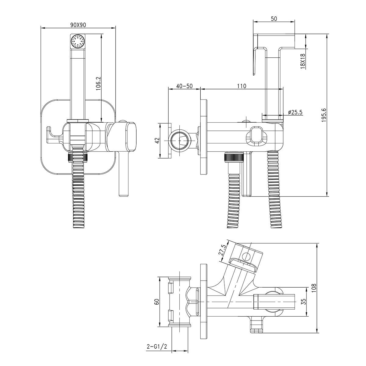 • Аксессуары в комплекте: лейка гигиенического душа с нажимным механизмом, душевой шланг 1,2 м (Turn-Free)