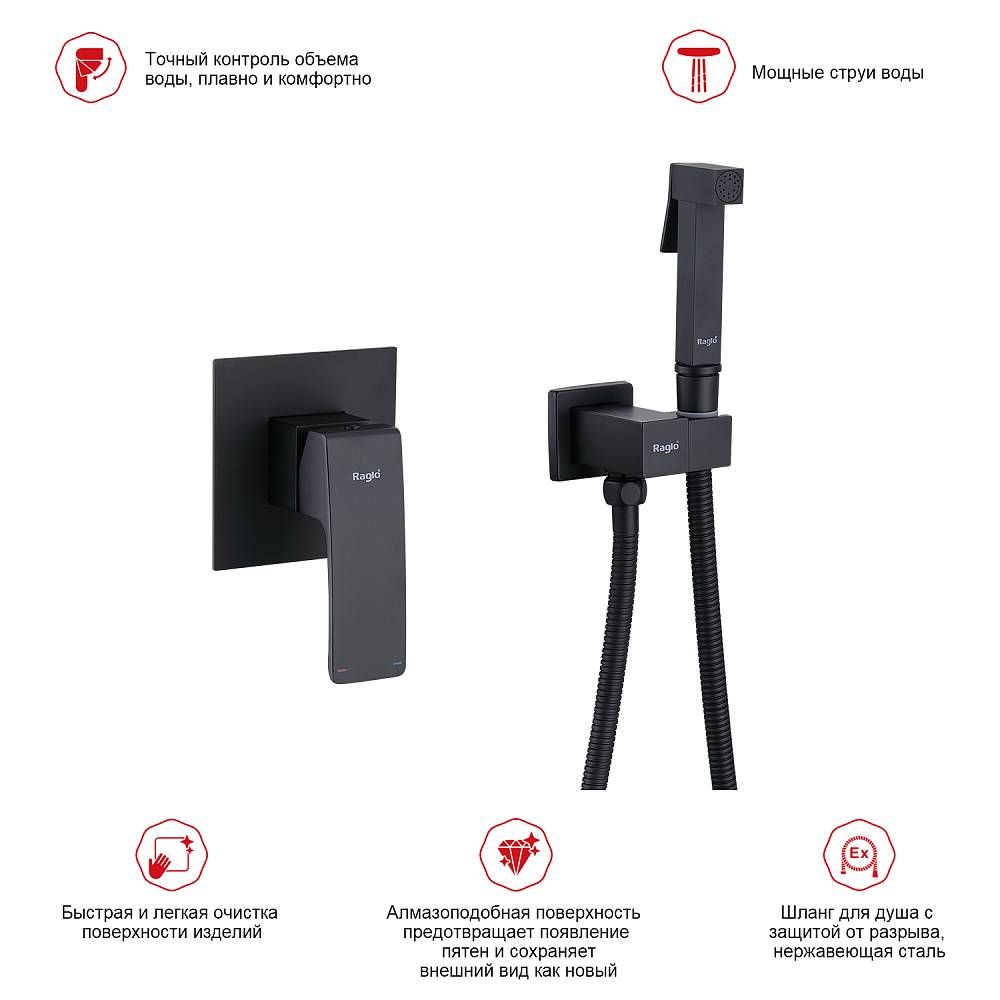 Гигиенический душ со смесителем Raglo R01.53.06 чёрный купить