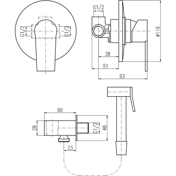 В комплекте поставки: гигиенический душ, душевой шланг, держатель для гигиенического душа, смеситель.
