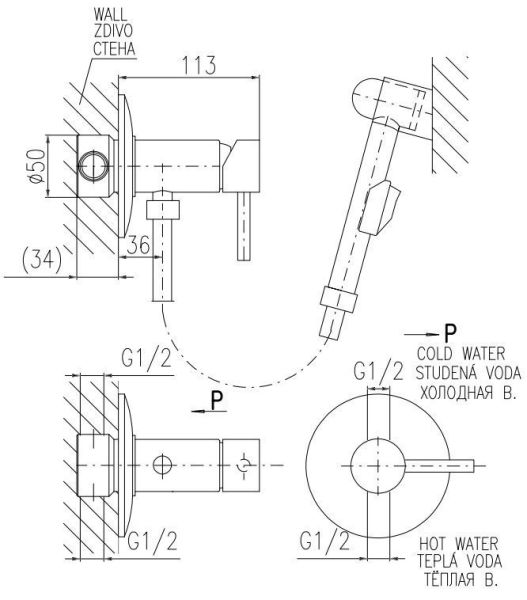 Гигиенический душ со смесителем Rav Slezak Seina SE947 хром купить