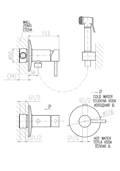 Гигиенический душ со смесителем Rav Slezak Seina SE947/1Z золото купить