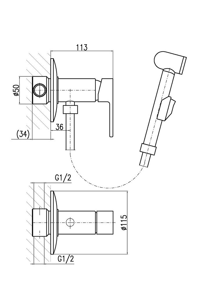 Гигиенический душ со смесителем Rav Slezak Vltava VT447/1CMAT черныйАртикул