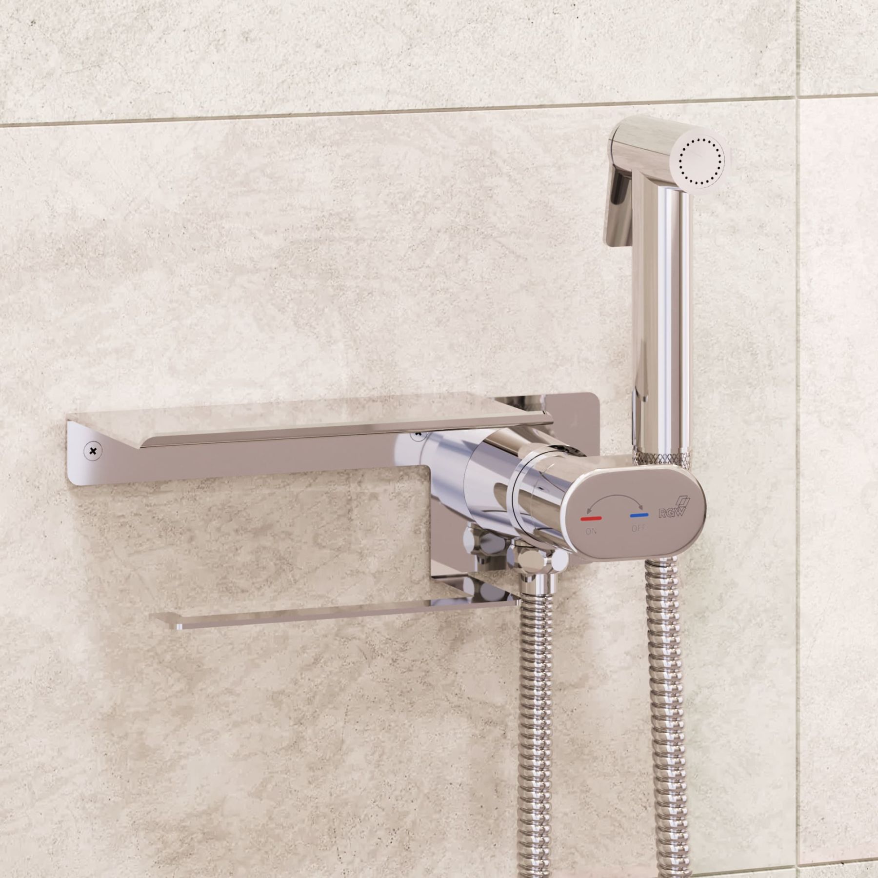 Гигиенический смеситель с прогрессивным картриджем, встраиваемый в стену, с накладной полкой и ... Подробнее