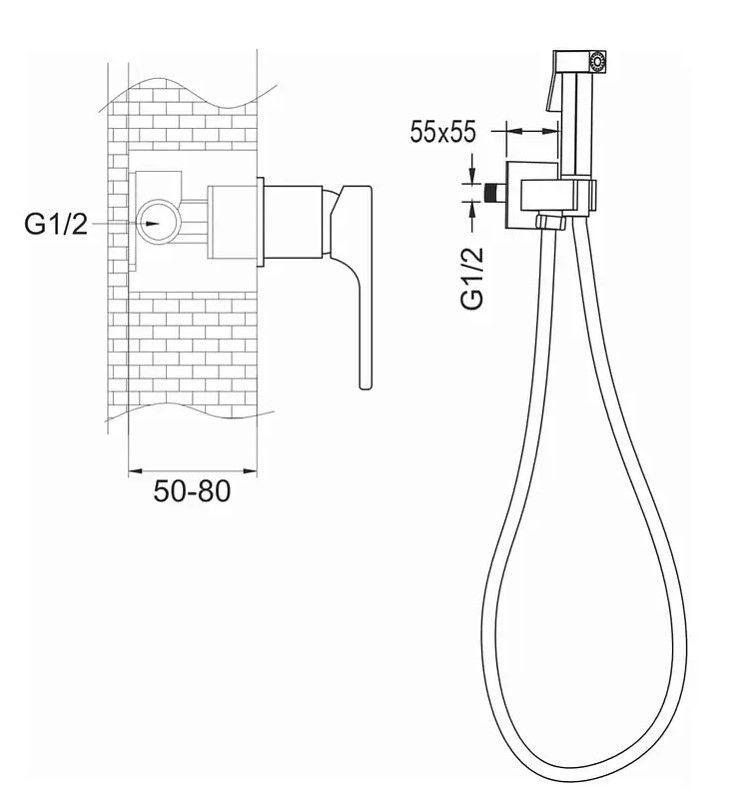 Гигиенический душ со смесителем Rose R1005H, черный.Управление: рычажное.Материал: латунь.Монтаж: внутренний (скрытый).