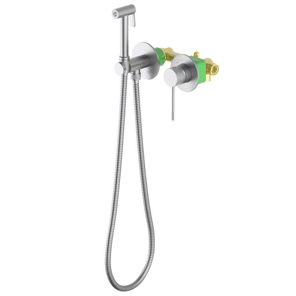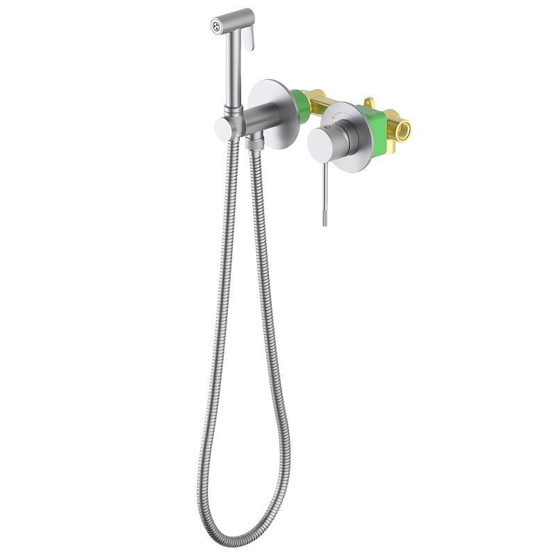 Встраиваемый смеситель с гигиеническим душем Timo Saona 2339 предназначен для монтажа в твердой или полой стене. Термокартридж с защитой от ожогов ограничивает максимальную температуру воды 45 С° повышая комфортность и безопасность использования. Основной задачей данной модели является: экономия места (установка чаши для биде занимает достаточно много места и к тому же затратнее). Все коммуникации, крепления и механизмы спрятаны в стену и закрыты декоративными накладками, снаружи находится только рычаг управления смесителем и держатель гигиенической лейки с подключением шланга, такая модель отлично сочетается с инсталляцией для унитаза. Длины шланга 1,2 метра хватает для решения гигиенических задач. Можно также использовать например, для мытья собаки после прогулки или наполнения ведра воды и т.д. Сложностей монтажа не возникает при установке смесителя опытным сантехником. Внимательно изучите инструкцию по монтажу и эксплуатации.