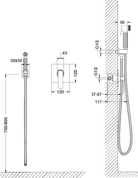 • Смеситель скрытого монтажа, с гигиеническим душем