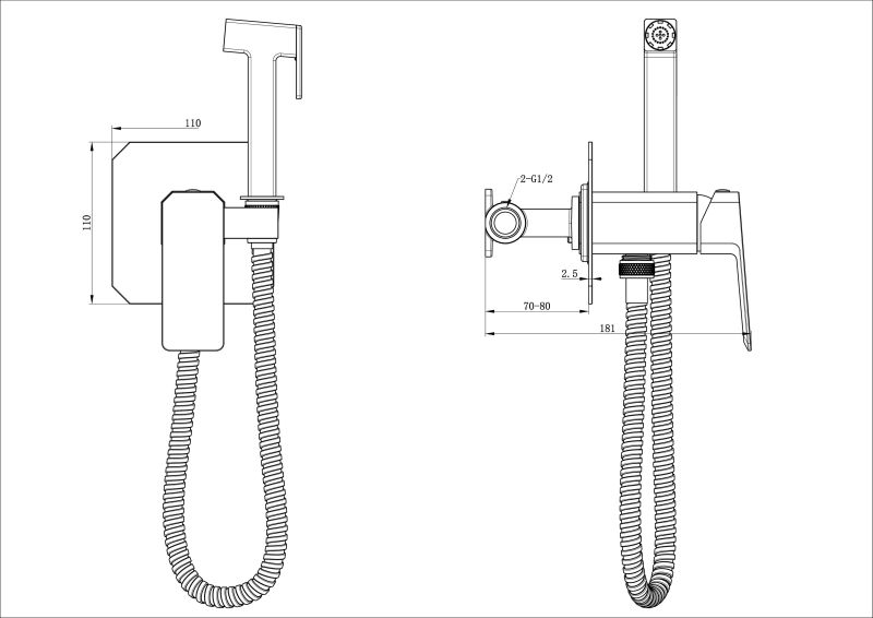 Гигиенический душ со смесителем Wonzon & Woghand Diamond WW-88829011-BGM тёмный графит